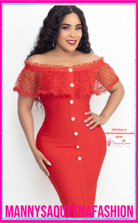 Glittered Ruffle Red Dress